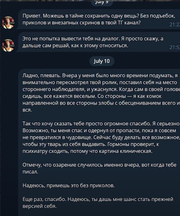>>1049768 >Слишком дохера конспирологии >слишком уж 4хмерные шахматы для того А никакой конспирологии нет. Всё становится достаточно просто, когда заметишь, что среди блогеров есть только одна единственная запретная тема для разговора. А это именно что обсуждение рекламодателей и их ТЗ(те самые методички). Блогеры могут хуесосить власть, пыньку, наговорить себе на уголовку, или наоборот быть самыми невероятными подсосами этой власти, в пьяном неадекватном состоянии начать пускать сопли как их в детстве трахал отчим в жопу, ржать над распятыми мальчиками (постиронично конечно же), да хоть говно жрать. Но чего блогер никогда не сделает, даже под страхом смерти - будет рассказывать про монетизацию, рекламодателей, откуда деньги и за что деньги, на кого работает, никогда не покажет те самые методички, по которым работал, даже если переехал в другую страну без планов на возвращение и с максимальным осуждением бывших рекламодателей. Это самая секретная тема, там не будет ни имён, ни названий, ничего. Может быть спустя 10 лет что-то очень мельком и неохотно расскажут, как тогда велись дела с пометкой "ну вы тупые если сами этого не знали, не видели, не понимали". А не показывают и не рассказывают, даже если ненавидят заказчика и хотят его покарать, по одной причине, потому что как только они сделают, других у них уже не будет. А сколько бы блогеры не ссали в уши о том, что "вы ребятушки мои зрители, мои единственные спонсоры", с радостью это своё мнение подкорректируют для любого щедрого заказчика. Именно поэтому каждый раз при обвинениях других блогеров проскакивают беспруфные визги про чемоданы, что раз похвали то, что компашке не нравится, и не похвалил то что компашке нравится, то это тоооооооочно чемоданы, по другому и быть не может, все всё понимают, запруфать не могут, потому что пизды от заказчиков получат, но все так делают и все знают как это работает, а значит и этот тоже так делает. Именно поэтому каждый раз происходят такие невероятные подрывы и визги с оглушительным демеджконтролем после, когда кто-то внезапно сливает какие-то рабочие чатики таких заказчиков, в которых внезапно оказывалось, что все эти отдельные, никак не связанные друг с другом публичные личности внезапно сидят в одном месте и что-то обсуждают. Что это рушит тот самый образ независимого лично мнения.