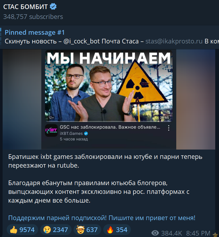 То, что хохлы и им сочувствующие массово нажаловались на его ютуб-канал, в долгосрочной перспективе, ему не сильно навредило