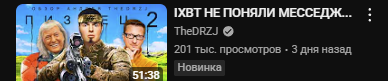 >>1049715 Слишком дохера конспирологии, Илюха сам трехслойный постироничный хер. Вся эта спланированная чипсо спецоперация это буквально случайный блохер надел кепку, очки, и наплел просто невероятно толстой хуйни вроде того что Бес называет себя Кодзимой. Они могли вырулить как угодно, но вырулить решили именно так - громко обосравшись. Большинство комментов под видео от людей с галками в целом даже безобидные. Вполне логично что сейчас на хайпе все эту тему будут обсасывать и лутать просмотры, это блядь естественно, народ почувствовал кровь и профиты. У меня натурально чувство повторения финала лорной войны с видео от кастома на 8 часов. Но Бес сам промолвил что ему прилетел бонус от купикода, а они подвязаны под многих блогеров, это правда, но то что они якобы серые кардиналы слишком уж 4хмерные шахматы для того что изначально было буквально обычным пранк-звонком.