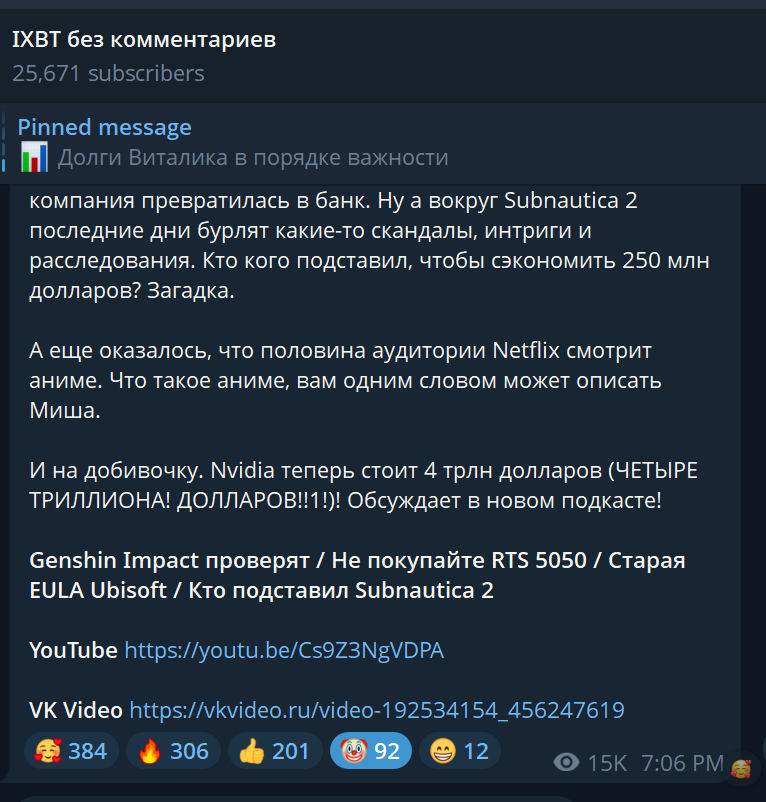 Виталика в целом много за что можно хуесосить. Чувак буквально собрал лояльную и платежеспособную аудиторию, но не смог это экономически реализовать и теперь угробил свою и редакционную репутацию.