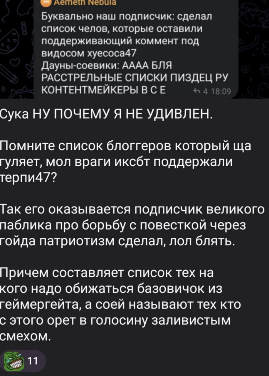 Ну никто бы так фронтом популярных ютуберов никогда "случайно" не выстраивался в комментах, заранее подговаривая и столько блять согласились в травле виталямбы поучаствовать, даже те кто никаким богом не связаны с ними...
