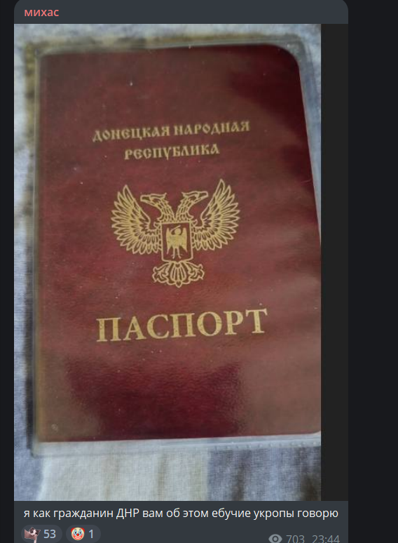 >>1051265 Не понимаю, как Донецк в глазах хохла превратилась в Луганск. вроде это часть его страны, должен хорошо географию знать Да, и Михас служил в армии ДНР. В чем смысл назвать "мамкиным" человека, который лично двухсотил хохлов. Он не на словах, а на деле доказал, что готов защищать свои убеждения.