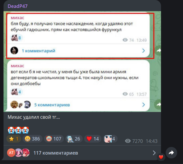 В принципе, будь Дедпи47 украинцем, и будь он ватаном, доблестные украинцы как никак смогли бы это сделать(тут хочу похвалить украинцев: они сплоченные, и могут легко сломать жизнь блогерку в инете, если он им не понравится) Но в РФ таким занимаеся анальная братва Стаса Ай как просто и стримера Жоры + ограниченное число шизов а-ля Пиздняков.