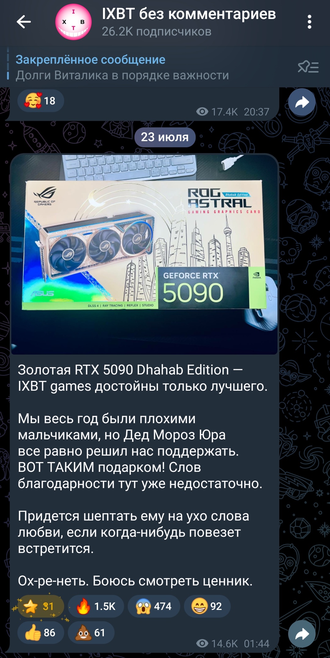 Что за Юра( который задорили видюху Виталику)или откуда у Виталямбы такие деньги на 5090 Дубай Едишион за 40-50 пультов деревянных ? И что Ихбт хотят этими выебонами показать?