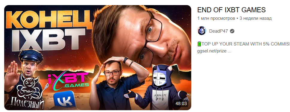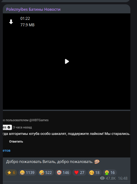 Последние новости: - Михас выпустил разъёбное разоблачение, где прошёлся не только по IXBT, но и по DeadP47. Оказывается, хейтеры "доносчика Витали" сами строчили кляузы на неугодных. Никогда такого не было, и вот опять!