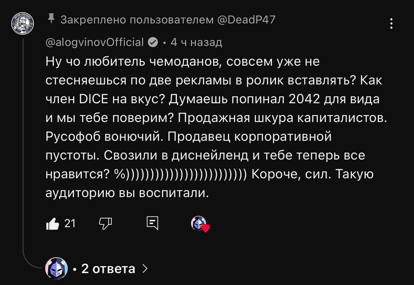 давайте как точку хочу поставить во всём этом — если позиция ДедПи47 настолько крепкая, если моё видео это вода без аргументов, то почему он обоссался со мной пойти на стрим? мы бы посмотрели видос вместе или просто поговорили.