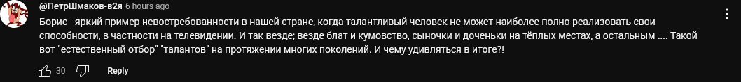 >>1050625 Над Бобристом просто в 2018 году в лахте посмеялись, когда он пришёл свои услуги по пиару выборов предлагать. Взяли юрку пуковдыха и ко. Бориса отправили репортажи для бабушек снимать из аэропорта и почты. Борис затаил обидку и теперь косплеит камикадзе ди и варламова. Только он лет на 15 опоздал с тейками про хуевые дороги.