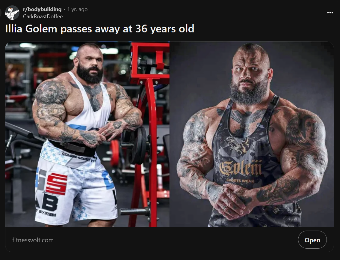 Настоящий качок откис в 36 годиков. Прямо как жирножопые витолямбы. А всё из-за того что человеческое тело не способно носить по 100 кг жира или мышц. Забавно читать разрывы качков на тему что имт неправильное из-за того что записывает их в жирножопых ожиренцев.