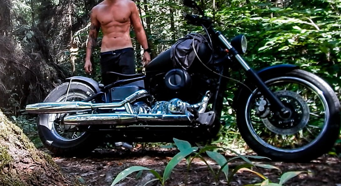>Пена своей богатырской рукой ведет байк и живет свою жизнь Другой рукой обнимая своего парня?