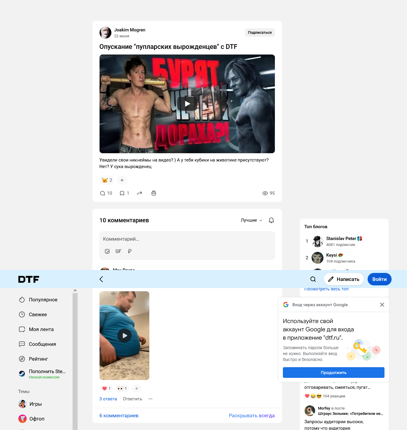 На DTF.ru забанили КОТОМЕМНОГО за критику американской пропаганды