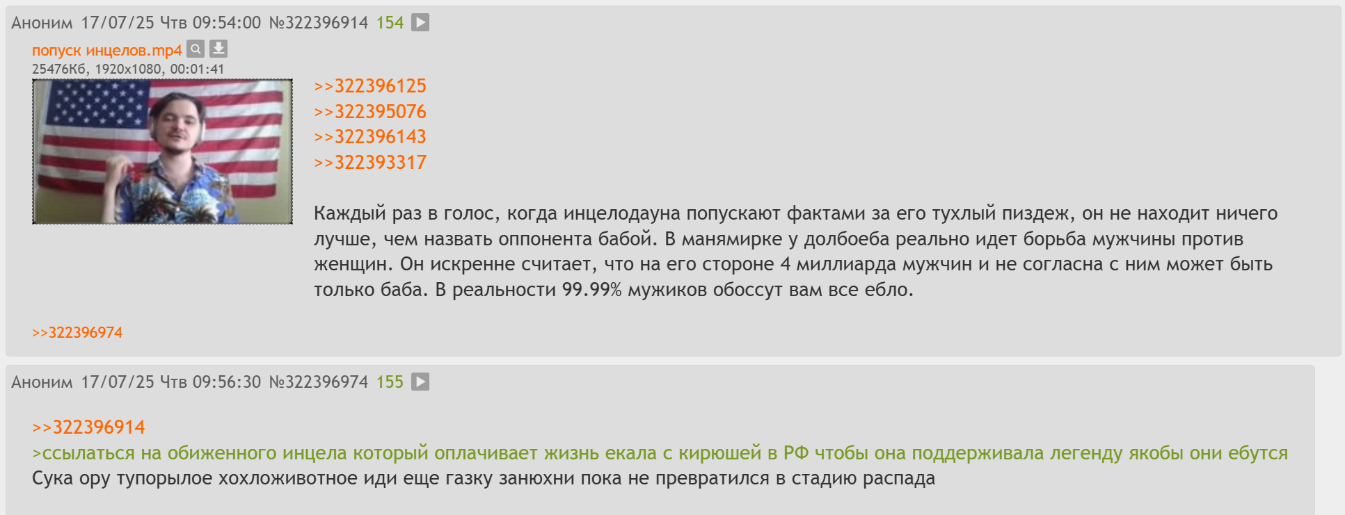 >>1052217 >стасяна Пошла апелляция к ещё более авторитетному источнику. Открывай ротеш пошире, подпедочурка. >чтоб протухшие фотки с патлатой чуркой из 2022 Беспруфный пиздёж подпдеочурки-мочехлёба, патлы у него были в 2024. Видео с флагом слили несколько месяцев назад, ты его так и не смогла перекрыть, перефосная шлюха. >>1052222 Да-да, ты не крутил себе 7 лайков за минуту и не сосал хуй, подпедочурка.