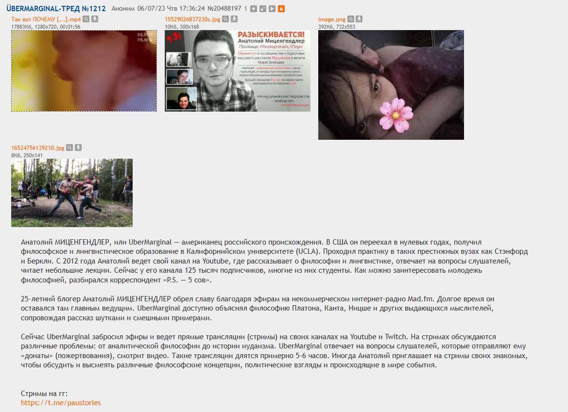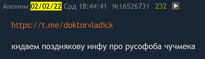 >>1061843 Пост с видео где толя ведает про свое донатство, про призыв - бомбежки мирного населения рф. Краткий пересказ и объяснение ситуации, и соответственно фио тещи, ее предполагаемая должность. Не поленитесь - сделайте тоже самое