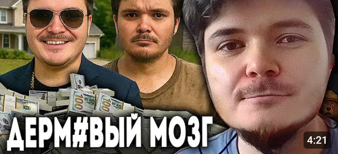 А теперь у него 300 зрителей, забанен твич, перебанины все донатилки, даже хохлы отказали в своих доеатилках, донатят 2.5 эмигранта заказывая видосы по 1 очереди, и при этом он снимает хату в тысячу раз лучше