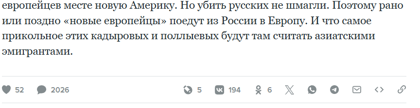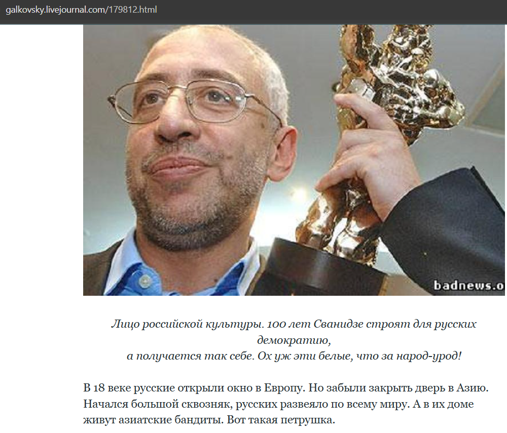 >>1061345 >"Мне похуй на хохлов, главное побольше русских сдохло" Это буквальная цитата? Или он где-то говорил похожее, на стримах или в постах? Хочу кое-кому скинуть, чтоб не дрочили на татарского унтерменша.