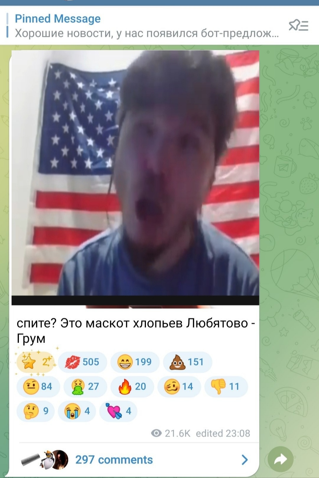 >>1061969 Я не хохлина никакая. И да, будет. По твоему у фсб не возникнет вопросов, почему дочка условной майорки админит канал донатера рдк? Попрут с должности как нехуй, но нужен инфоповод. Кстати, у наркомпнки в канале тг есть шуточки про беслан пенивайз - можете по ключевому слову найти