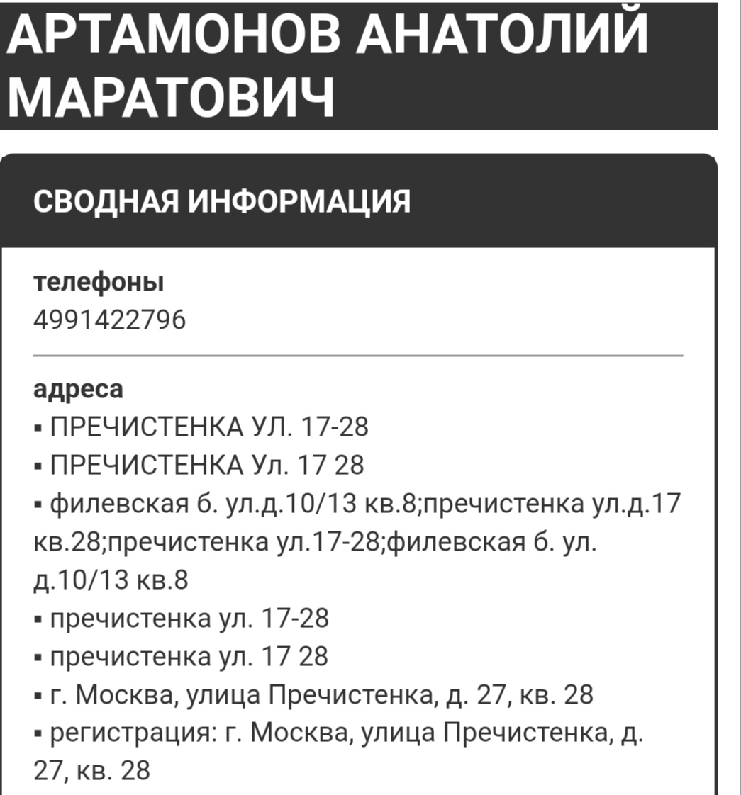 >>1062363 На артамонова записаны две квартиры в зеленограде. Кидали пруфы давно в тред. В тг кунсткамера возможно про это есть. Надо дежурному в тг написать