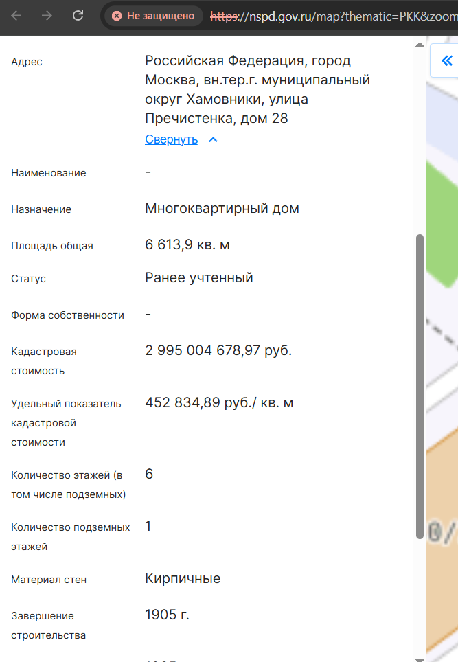 >>1062417 По адресу на Пречистенке находит дом дореволюционной постройки. Квартира площадью 250м2, кадастровая стоимость на 2013 г. - 113 млн. руб. Кадастровый номер 77:01:0001055:1214
