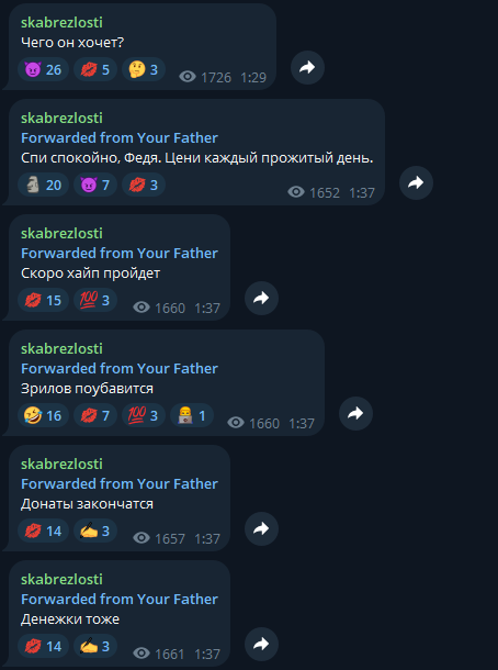 Вложился деньгами, а оказался мемом, в итоге: донатер исчез, а Скабр продолжает лутать. капитализм, мать его. монетизация близости как она есть. Федян же просто монетизировал выброс. Трафик поднялся, чат визжал, донаты текли. Экономика внимания. Поставил на поток — и не прогадал. Донатер ушёл в тень, а Федя — в плюс. Ростет.