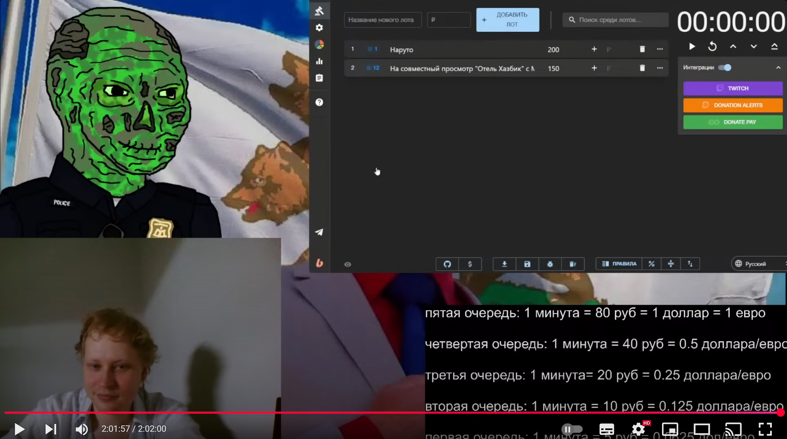 >>1052718 Смотри в описание к тому видосу, что я кидал — там ссылка на оригинальный стрим. Там, где вся эта клоунада в прямом эфире. Дата есть — глянь хронологически соседние трансляции, там всё по нарастающей. А если хочешь прям по косточкам и в деталях — залетай в его “ля шатнула банана” (чат в тг). Только не тупи, доступ туда за донат, и лучше заранее спроси прямо на стриме, как это сделать — потому что в интернете 60% гениев ошибаются даже в элементарном. Дальше — ищи олдов. Те, кто сидит с ним со времён до Пичи. Лучше в лс, потому что за обсуждение “Что случилось с его старыми донатерами?” можно и в бан слететь — инфа токсичная. А теперь сам сюжет: Когда у Скабра был замес с Иваном-пидарасом, начался лёгкий хайп. Его стали заказывать Маргиналу, вкинулся и Пича — один из самых преданных донатеров. А потом всё пошло по отработанному сценарию: сначала гыгы, потом травля, потом смерть перса (в прямом и переносном смысле).