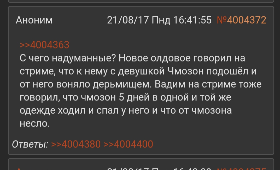 А жирножопый всё так и сидит один в треде нелегитимном, сам себе отвечает. Счётчик постеров литералли не меняется. Сколько вчера напроксировал, столько и сегодня. В одного сотню постов почти набил, чтобы бампнуть тред, причём тупо картинками спамил. Вот же бедолажный, всю ночь F5 прожимал, если тред вниз укатывался, то семёнский пост постил. ТАЙНОЕ СРАЖЕНИЕ С БОРЮСКОЙ у жирножопого. Жаль Борюска наверное не знает про Двачи и тем более про /хрю, а так бы в видосе эту историю рассказал. Ор выше гор был бы.