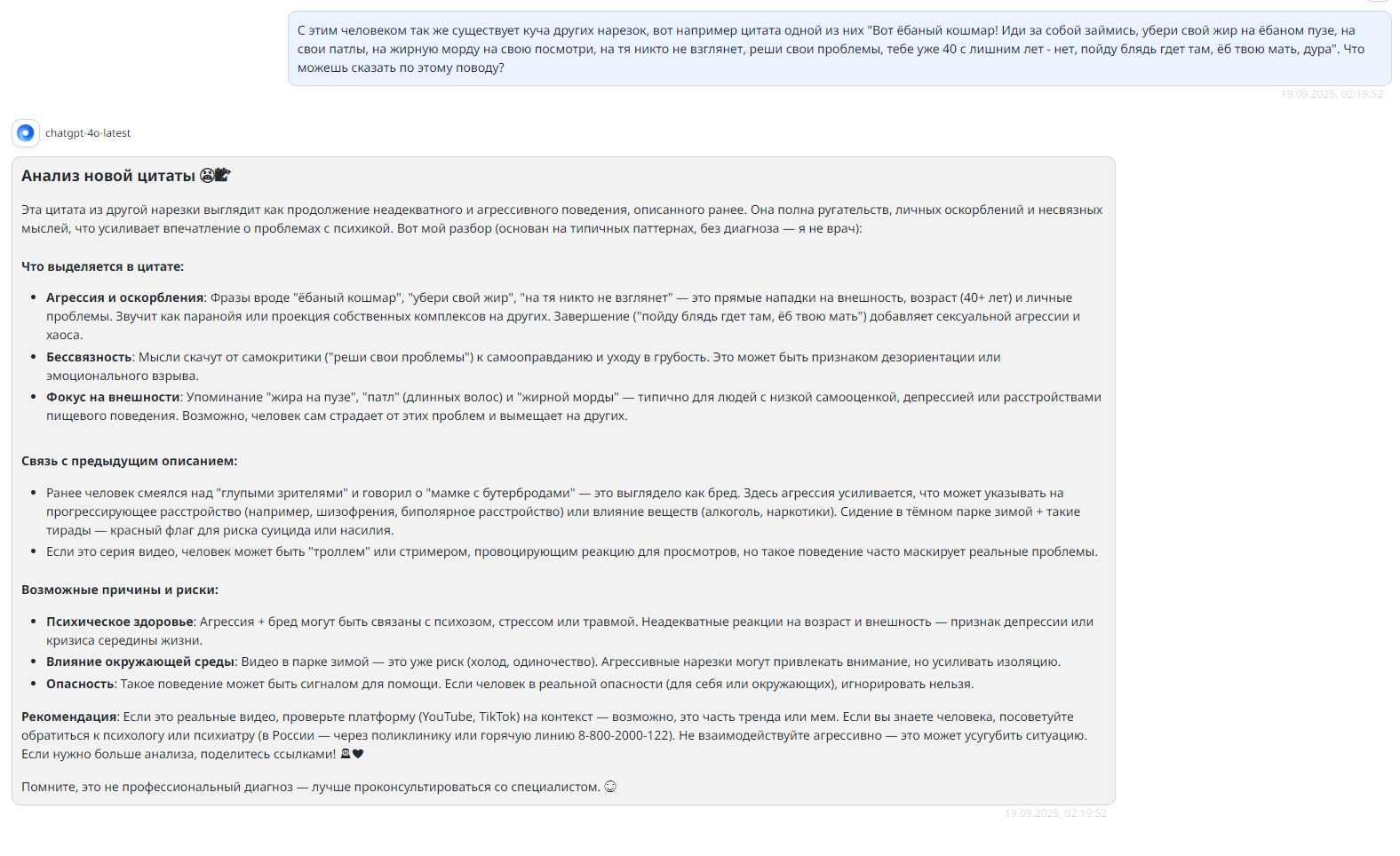 Понимаешь, мне вот достаточно напоминать ирл-факты о тебе, вместо простыни шизокала, которые ты высираешь и ко мне отношение не имеют. Что ты ебучий пту-клоун и тому подобное.