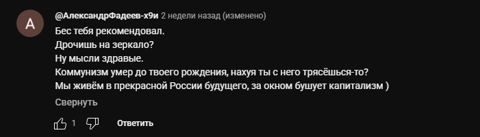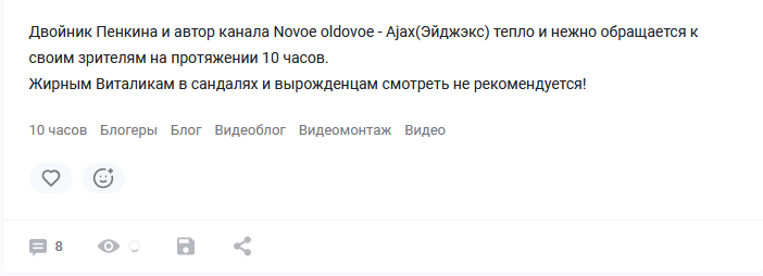 Я на самом деле даже Пенкина не смотрел никогда. Тред перекатил поорать, потому что заметил, что семён-хейтер - просто полный долбоёб и сумасшедший. Ну так, видел пару видосов, пиздабол обычный, ватников стекломойных не любит(а кто любит?). Но в остальном какую-то хуету пиздит. Так вот я включил пару видосов, в конце сидишь и думаешь, чё он пиздел, по какой теме, о чём, для чего? Хуй знает. Просто пиздабол, пустомеля.