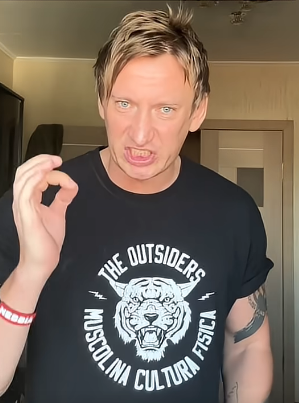 Вот так и живут богатые успешные сильные красивые мужчины телеведущие в РФ. Денег не хватает на обувь и одежду. Приходиться резать рукава истрепавшиеся и гонять в стертых кедах из 2006. До чего Путин довел страну.
