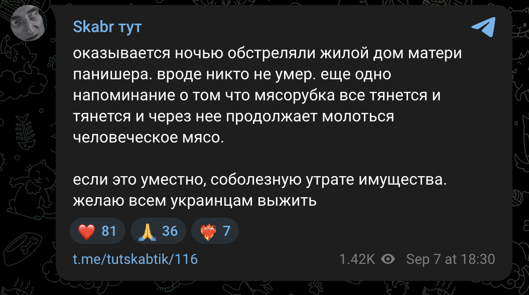 Он в США сидит, до него ничего не долетит. Так что вы воюйте, ловите шахеды, а я за вас поплачу, пока жена супчик не принесет из куриных бëдер.