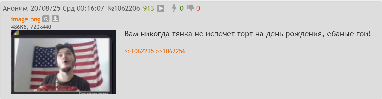 >на хохлов он работает "за идею" и немного донатов У него выхода уже нет. Он может даже внутренне и не хочет уже топить за хохлов, идейность за три года прошла, я лично знаю многих таких кто вначале СВО был пиздец идейный антирусский проукраинский борцун, но к 2025 году среди моего окружения таких буквально не осталось. Чмук может даже понимает, что находится на стороне проигравших, понимает, что лутал бы больше если бы не был за хохлов - все это уже на важно потому-что поздно. Никому он нахуй не нужен. И за свой поганый помойный рот надо отвечать.