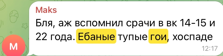 >>1074374 Это два хохла, которые друзья Толика, забивают тред постановочными спорами. Чтобы здесь не обсуждали вещи, которые для Толи неприятны, например: - Жалобы в Телеграм по поводу контента в его канале - Его недвижимость и источники заработка - Социальное происхождение родителей - Людей, которые из-за него погибли на Украине (например, Стадию Распада)