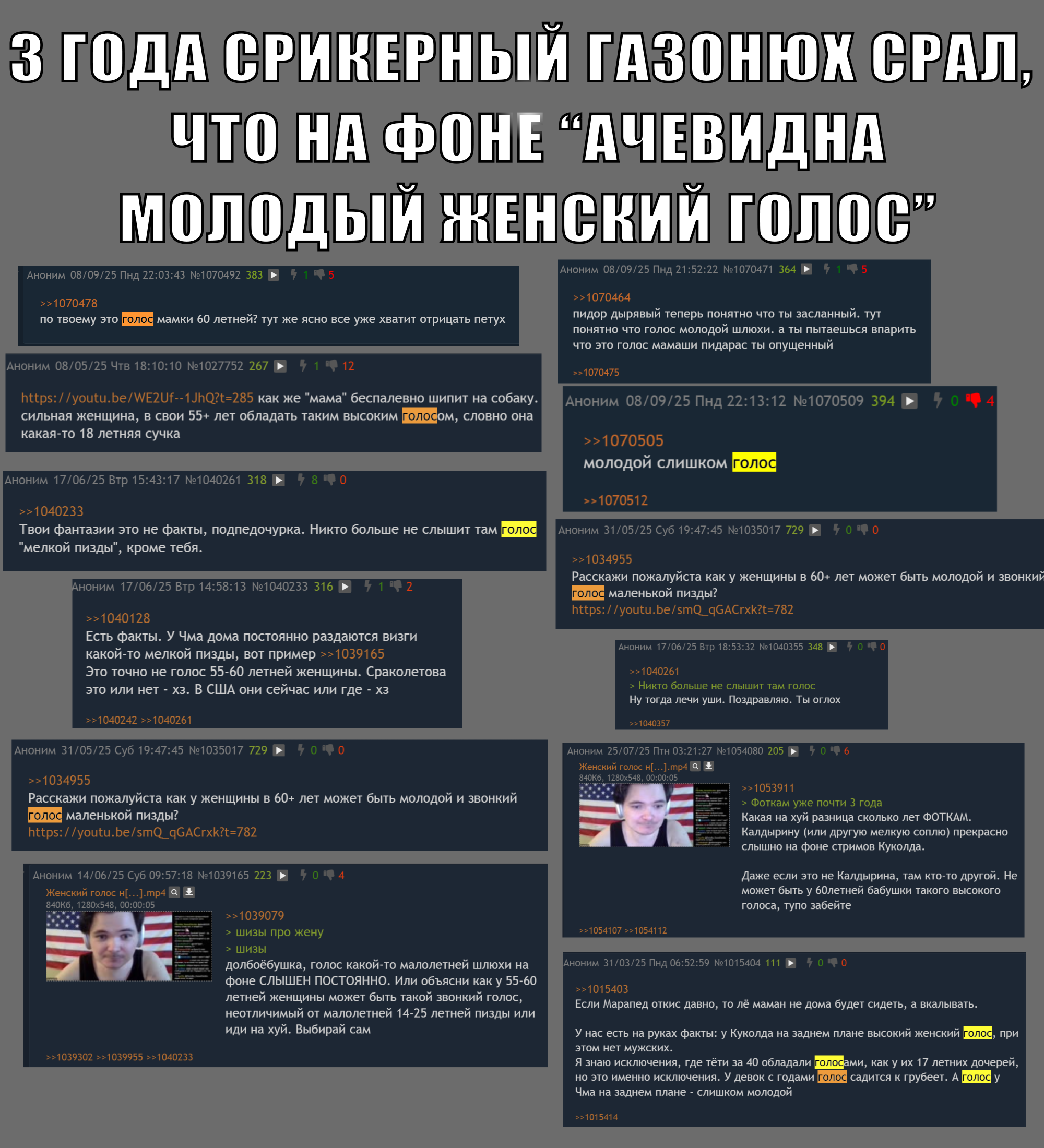 Всё, что может подпедочурка это бегать по треду с порванной жопой, постить старые фотки с патлатым узбеком из Волгограда из 2022 и выдавать голос чернильницы мамаши за голос маняжены. Подпедочурка 3 года визжала, что он легко отличает молодой голос от старого и ЭТА АЧЕВИДНА, пока подпедочурке в очередной раз не провели по губам. Не совсем понятно на кого рассчитан настолько тупой пиздёж, ведь даже совсем отбитый газонюх не поверит, что копчёная с какого-то хуя оказалась в США с обнищавшим нищим старым узбеком, когда можно лутать бабки с него на расстоянии и ебаться с чедами.