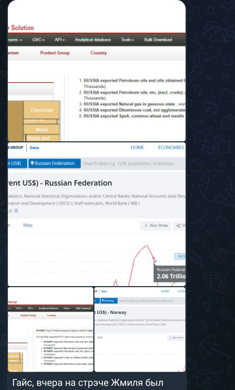 Слушайте, я чё-то не понимаю, зачем этот Кудряш (который сегодня на стриме будет) для спора со Жмилем ищет какие-то данные экономические, что-то там сравнивает, время тратит... Разве он не в курсе, что можно просто поставить на фон картинку с Пепе, и картавым голосом, запинаясь через слово, записать разоблачение Жмилевского, повторяя на протяжении 20 минут "Ты че не в Донецке то?"