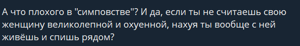 ну и да. у тебя формально "твоя" девушка. у жмиля буквально его жена. представь, если бы ты сам букмеров бы в тг канале рекламил, но предъявлял бы за ауки жмилю, потому что "это весело и достойно внимания"
