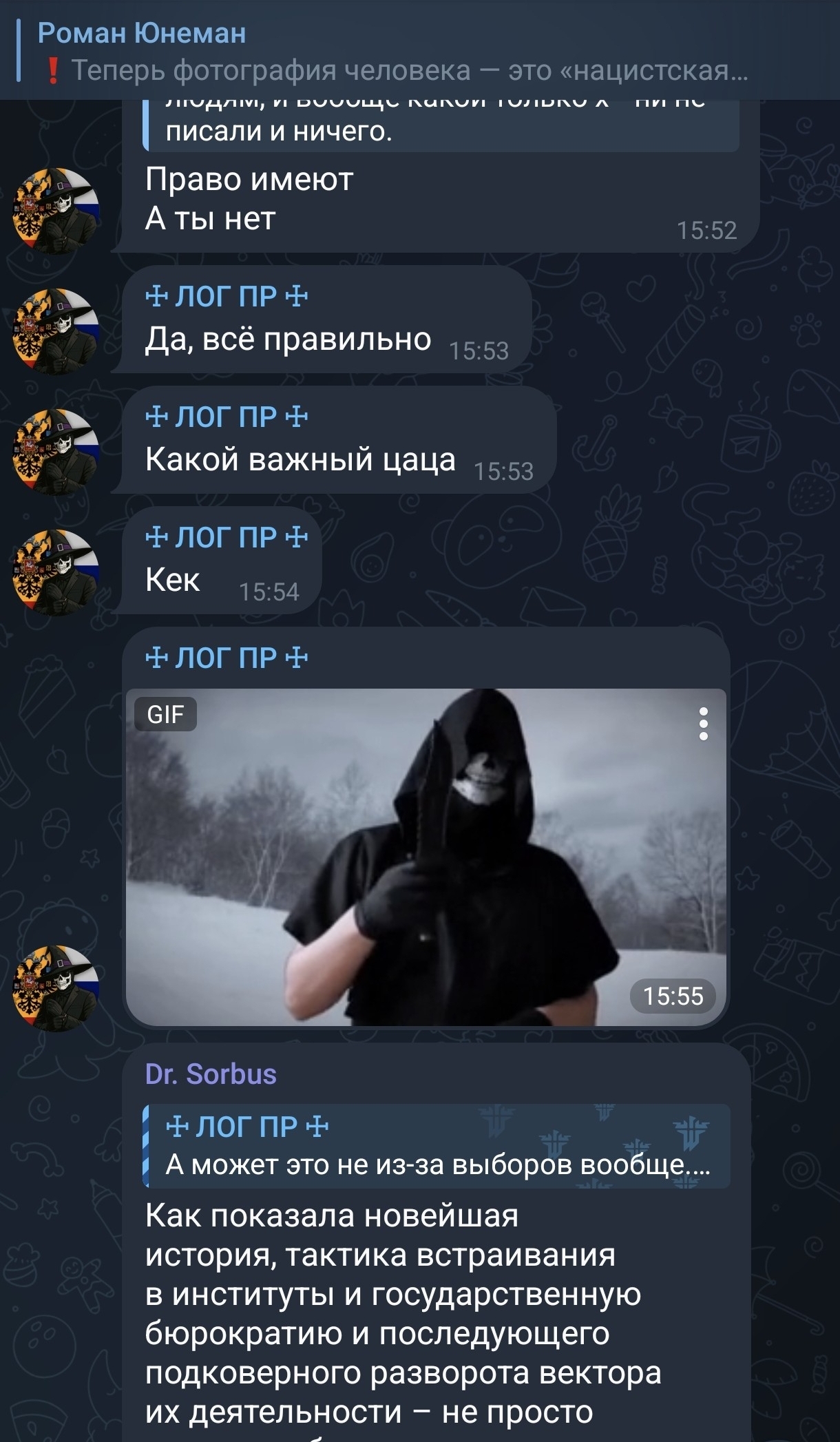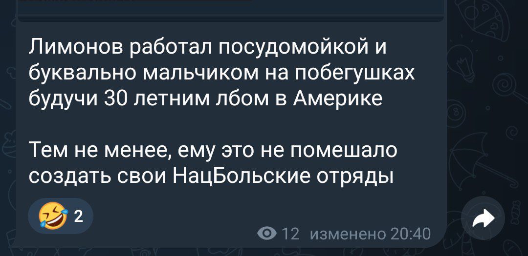 Я больше проиграл, что он до сих пор считает Свята Павлова русским националистом. Камон ,чел, почитай сколько раз он участвовал в Лимоновских оргиях. Секретный канал "под лед", ели что Нацбол он.