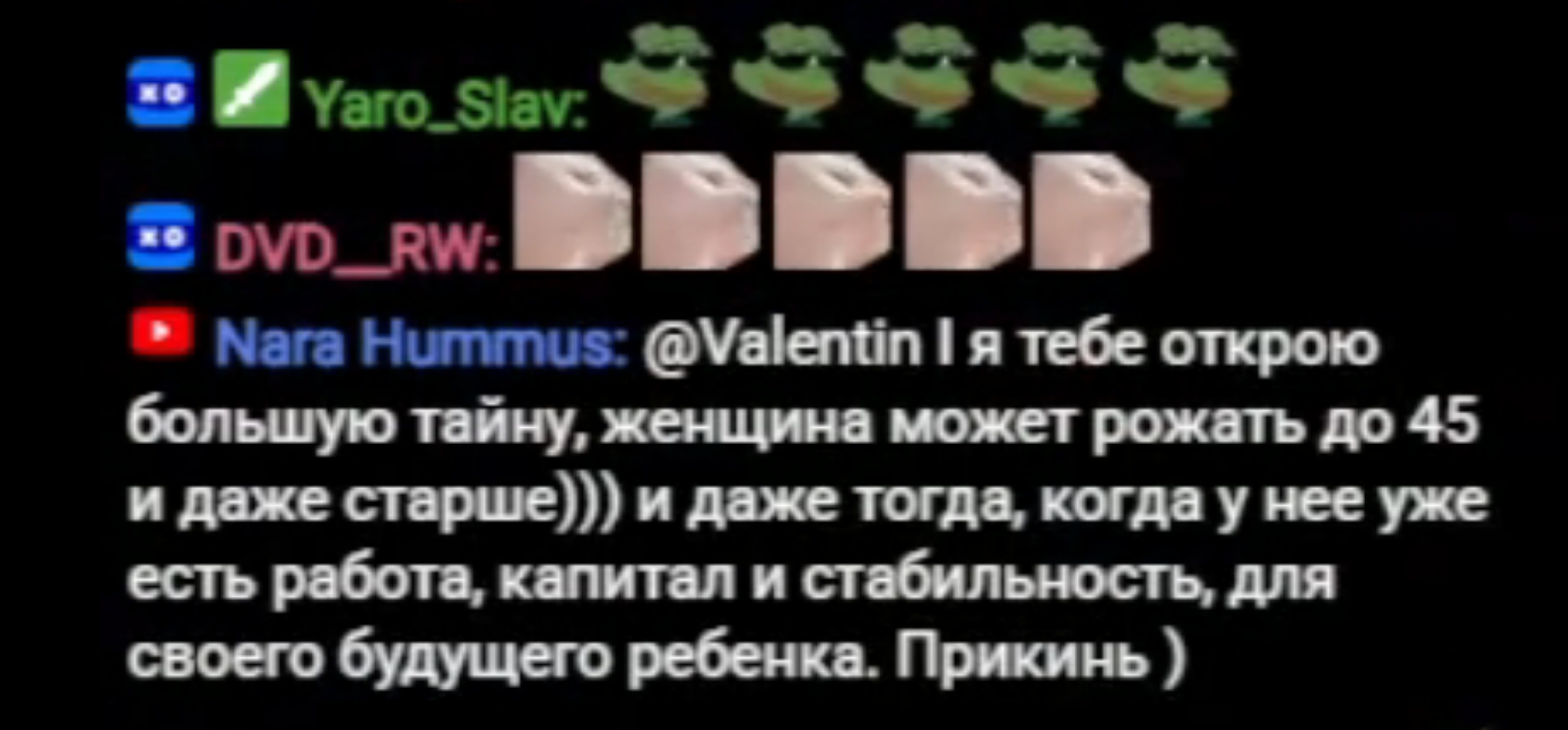 Судя по видео кринжштофа про демографию - он никогда в жизни не разговаривал с женщинами. Типа даже с мамой или бабушкой. Возможно его родил петух в тюремном бараке, или он от плесени завёлся где-то сам.