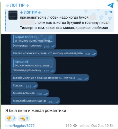 >Я не называю Маргинала шизом, как ты, так как прекрасно понимаю, что делает он это всё специально Слишком сильная метка газовой лахты. Все по пирамидке. Мальчик Толя специально выпрашивал у Пережи прощение за оскорбление Великой башкирской поэтессы и самой мирной религии? Мальчик Толя специально оплачивал ущерб за разъебнный бар, где все видели как Микитка и Иринка сосались? Мальчик Толя специально терпел пуки Пержи в одном номере отеля? Мальчик Толя специально зашёл в три часа ночи на стрим Магога, где пережа откровенно ссал ему на ебало? Слишком много вопросов. Слишком мало ответов.