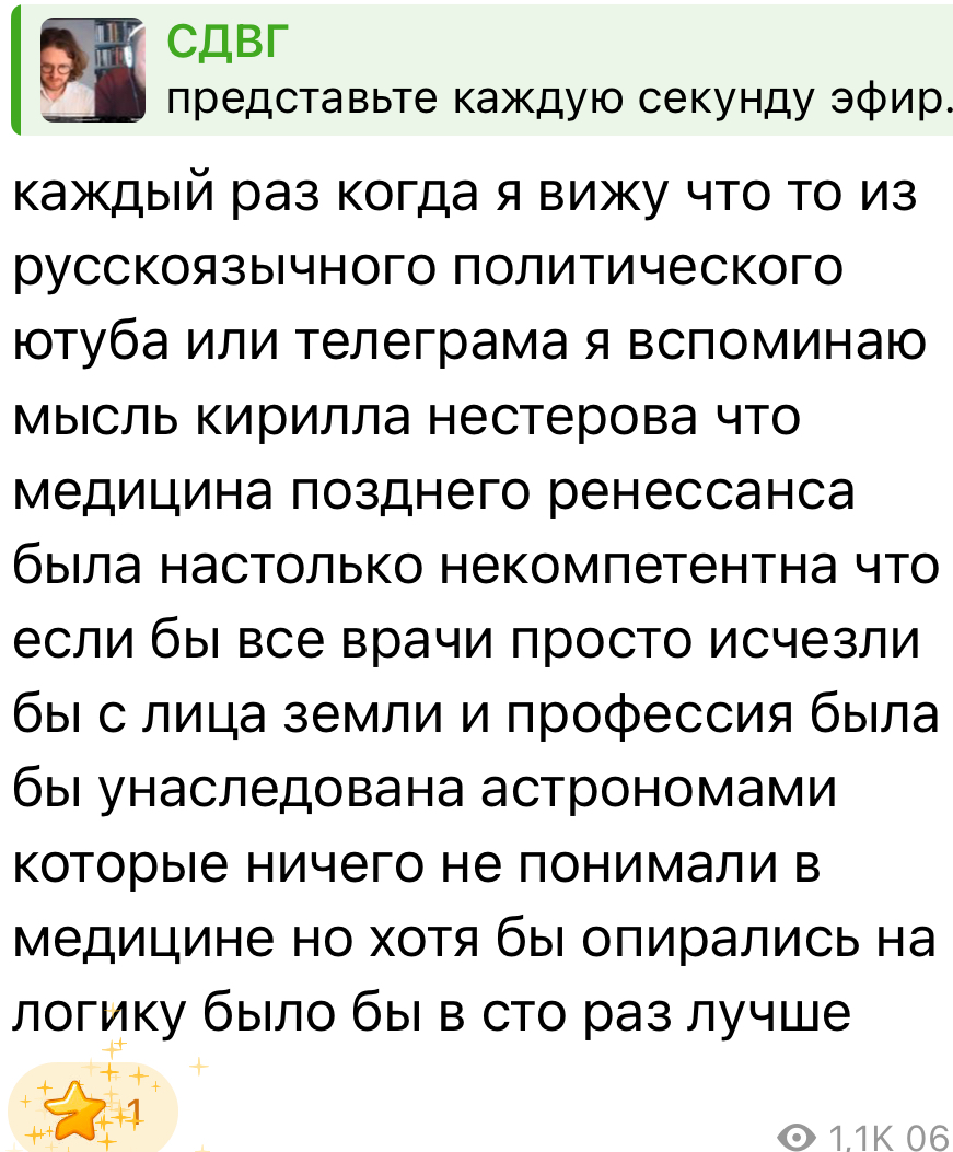 Чел, ты криштофа цитируешь? Док брейнлет с анусом вместо мозга, если ему донаятят состоятльные люди, то это суфы с шиномонтаджкой