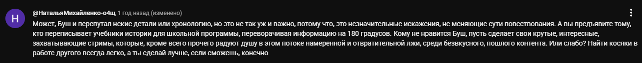 ПидРосов же не выстрелил тупо потому что у него отрицательная харизма и он настолько ебаное шизло что это видно невооружённым взглядом. В то время как есть суперуспешный стример-историк Бушвакер. Который как раз максимально адекватный, профессиональный и заточил себя тупо под одну сферу. И у него самая щедрая и лояльнейшая аудитория из всех подрбных стримеров, думаем.