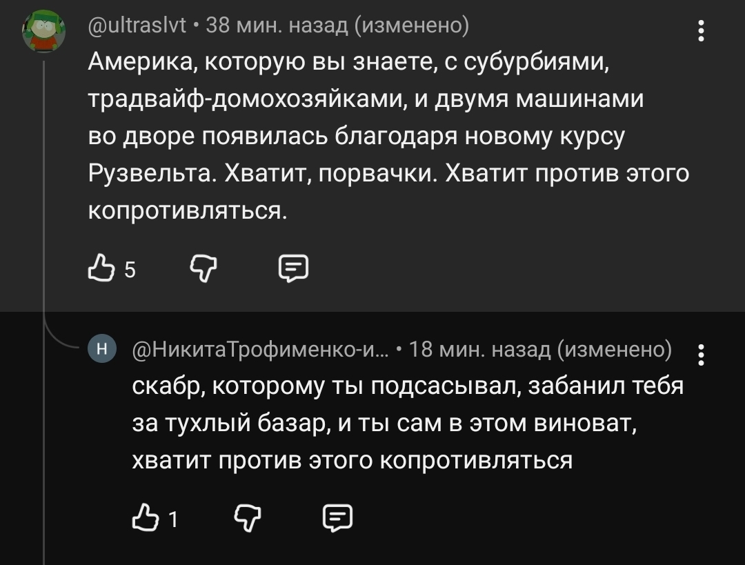 Пиздец вашему скабрику. Он видать попутал, думал можно спокойно на дистанции русских поносить, коммуняк, они не достанут. А местные рекаланты ему и правда ничего не сделают, ибо такие же по ментальности, как и сам скабр. Думал с грузинами тоже проканает, все хиханьки да хаханьки, панебратские подколы как за круглом столом в конфе островского, который за слова не считает нужным ни притягивать, ни тем более сажать. Грузины даже простят ему все высказывания за счет русофобии, уравняет мол, типа того. Но нет, скабрик. Грузины это Кавказ, как не крути, кровь не водица, и своих женщин, а тем более детей, они не позволят оскорблять. Здесь реальная жизнь, это Ирак, блядь, куда ты лезешь, грëбаный ковбой! Конечно, велика вероятность что он загасится, да и сам так думает, я считаю. Забудется и все, шанс есть что пронесет, но вряд ли. Еще может заставят извиняться местные националисты, и на этом съедет, а может обреют и краской умыться заставят. Ждем.