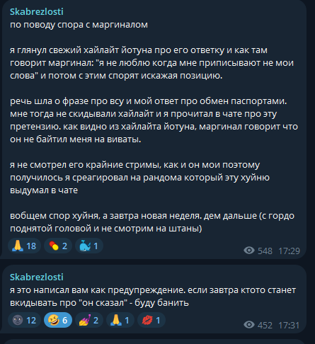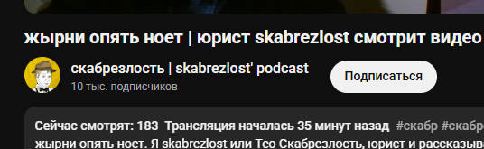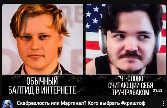 Скабрик не понимает, что родители Маргинала буквально сделали себя БОМЖами, чтобы у Маргинала было право пиздеть в интернете без последствий. Они продали свою квартиру в Зеленограде, чтобы перебраться в США. Сейчас им под 60 лет, папа в 60 лет работает в США грузчиков. Они снимают однушку, Маргинал стримит из кухни, поэтому все его зрители весь стрим слышат звон посуды и звуки воды. То есть его родители отдали буквально все (собственное жилье, молодость, престижную работу в консульстве США в Москве) за право Маргинала быть интернет пиздаболом. С чего Скабрик решил, что он, будучи нищим провинциальным лошком, может повторить путь Маргинала, скипнум этап с значительным даунгрейдом жизни и оставлением родителей на старости лет бомжами в съемной квартире? За право быть правачком- интернет пиздаблом нужно дорого платить.