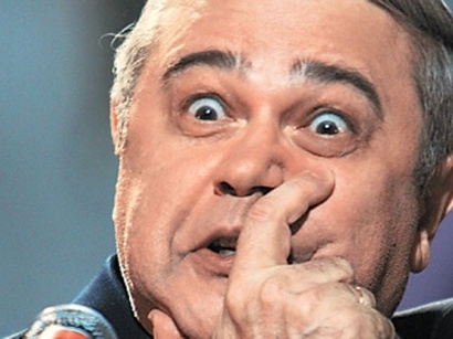 На прямых эфирах юродствует, гаденько смеётся, унижает своих зрителей, обижается, выдумывает биографии известным людям, хуесосит всех на свете, переживает о судьбах России.