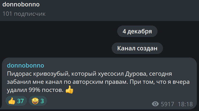 Ребята, в крайней голосовухе блоггер К расписал привальный алгоритм репортинга 1) внимаблядь пишем причину в репорте, что это самофорс с неймом в оппосте 2) пишем он подсос Жмиля из треда в хрю 3) политический блоггер нарушение правил фаг 4) делает контент про тусовку маргинала и лог пр, световом это персонажи хрю 5) политический активист латентный член партии нацболов