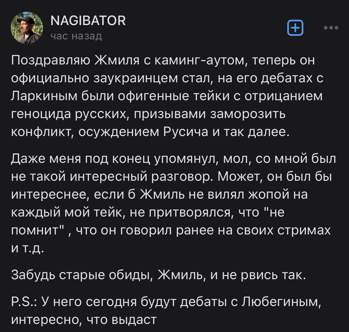 Жмиль один из первых кто топил за окончание конфликта по лбз. Я правильно понимаю, он же критикует руководство скотоублюдии, за то что те не хотят закончить конфликт по лбз, а требуют весь Донбасс? Он поддерживает позицию срампыни и зелебобы, что надо по лбз заканчивать? Или как обычно пук хрум?