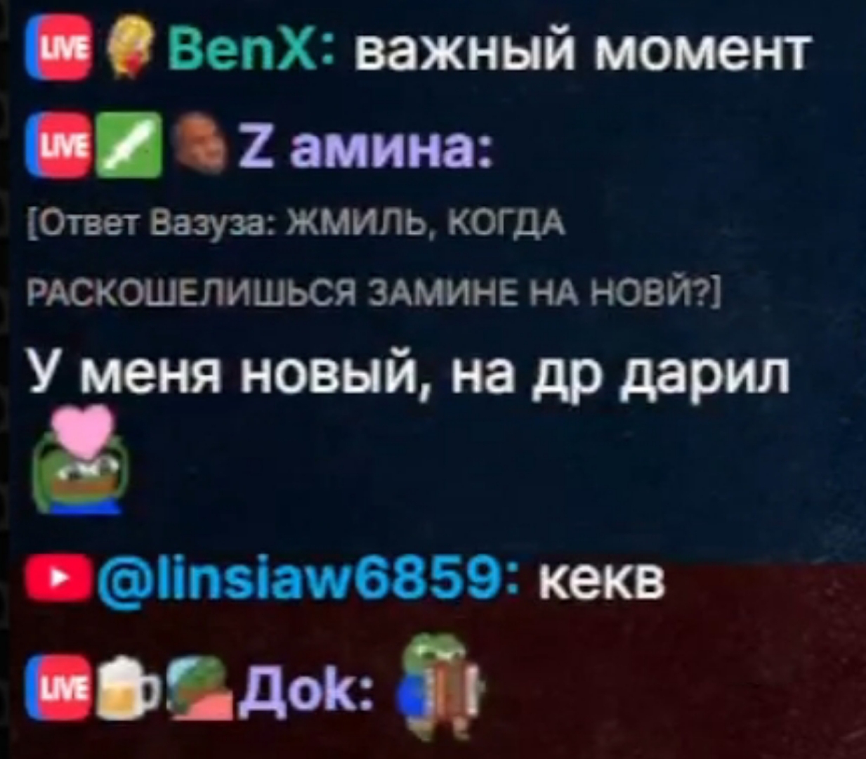 >>1103655 >>1103647 Как ты объясняешь эти факты: - Огромные суммы Чмилю донатят люди, которых нет в чатах. При этом это донатеры-однодневки; - Чмилю начали заносить по несколько млн сразу после того, как Псу Водолазскому предложили за 2% отмывать деньги на стримах; - Чмилю донатят по 600 000 руб в его онлайн-казино на варианты-рофлы: посмотреть чей-то концерт, спеть караоке на одну минуту и прочее Ну просто сложить два и два, и всё станет ясно. Пусть хотя бы выписку из банка сделает со своими счётами. Это в Тинькове и Сбербанке делается автоматически через банк-клиент без участия саппорта. А PDFки скинет в свой тг канал и свой вк паблик.