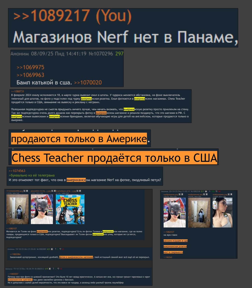 >>1091709 Есть только твой обсер с сша, в волгограде она была до августа 2024, в сентябре-октябре уехала в панаму. Никогда не была в сша и с педоузбеком не жила.