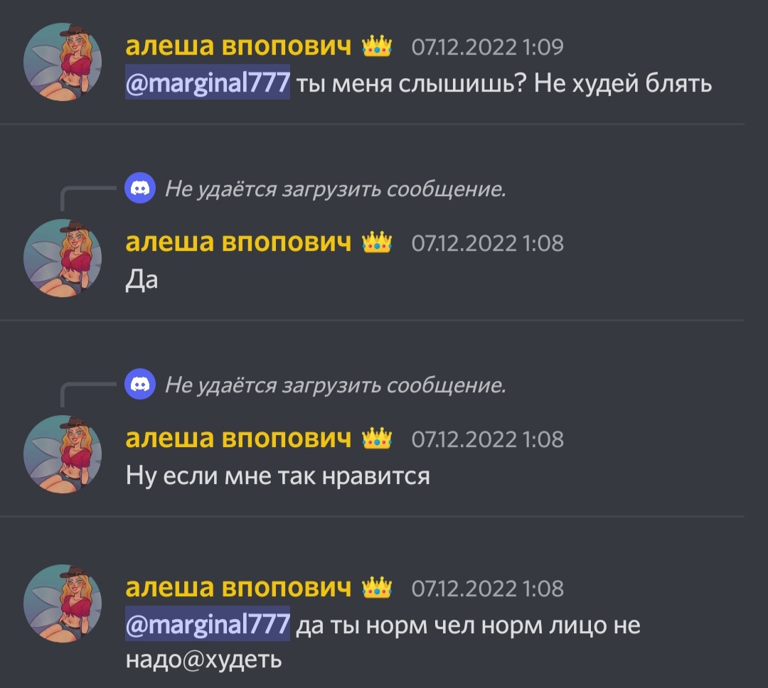>скрыто форсила >скрыто форсить Ходить на стримы росова с овер 1к онлайном и визжать "ЙА ДЕВУШКА МАРГИНАЛА" это не скрытно, форситься в тг и дискорде с одобрением админов это не скрытно, выкладывать протухшие фотки с узбеком из 2022 во всеобщее обозрение это не cкрытно, заставлять подсосов клепать хайлайты про ДЕВУШКУ МАРГИНАЛА на овер 50к просмотров это не скрытнo, отправлять воздушные поцелуи "жене" прям на стриме это не скрытно, включать видос сакрамара, смотреть его от начала до конца с шизой про жену, это не скрытно, перефорсная подпедочурка.