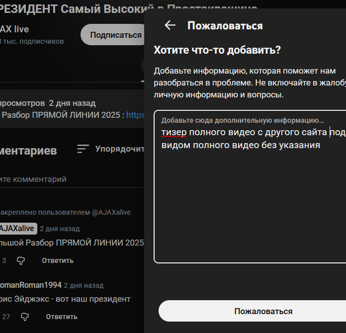 (суть репорта - ютуб не забанит пенкчмо за пиздобольство, НО перегон трафика это очень тяжкое неофициальное нарушение для платформы и ему порежут рекомендации если они были)