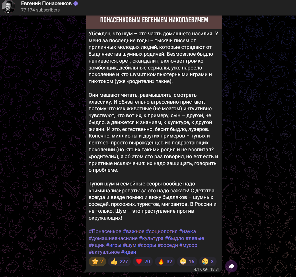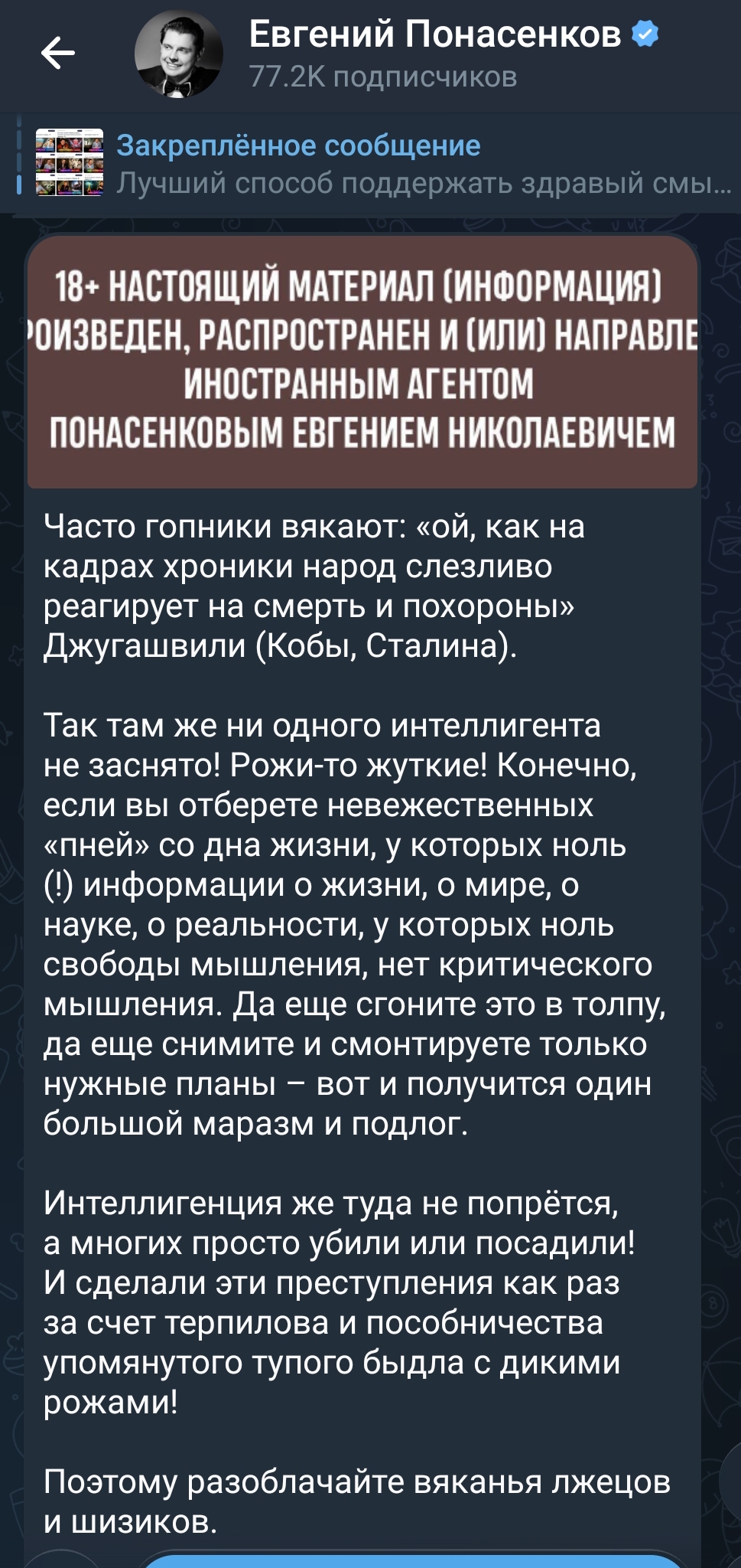 Последний тред, когда я что-либо пишу о Понасенкове, настал. Но я не хотела бы видеть в шапке кужима, вонючка он блять. В Новый год ухожу. Все кончено.