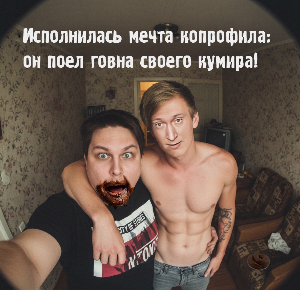 Я сплавлю Пену с мерзким жопанюхом Copro в единую хуйню, где Copro Пене в ебало смеется жуя хрючево и корчи рожи, пока Пена ему кричит худеть, а Copro в ответ говно по своему лицу намазывает и корчит рожи.