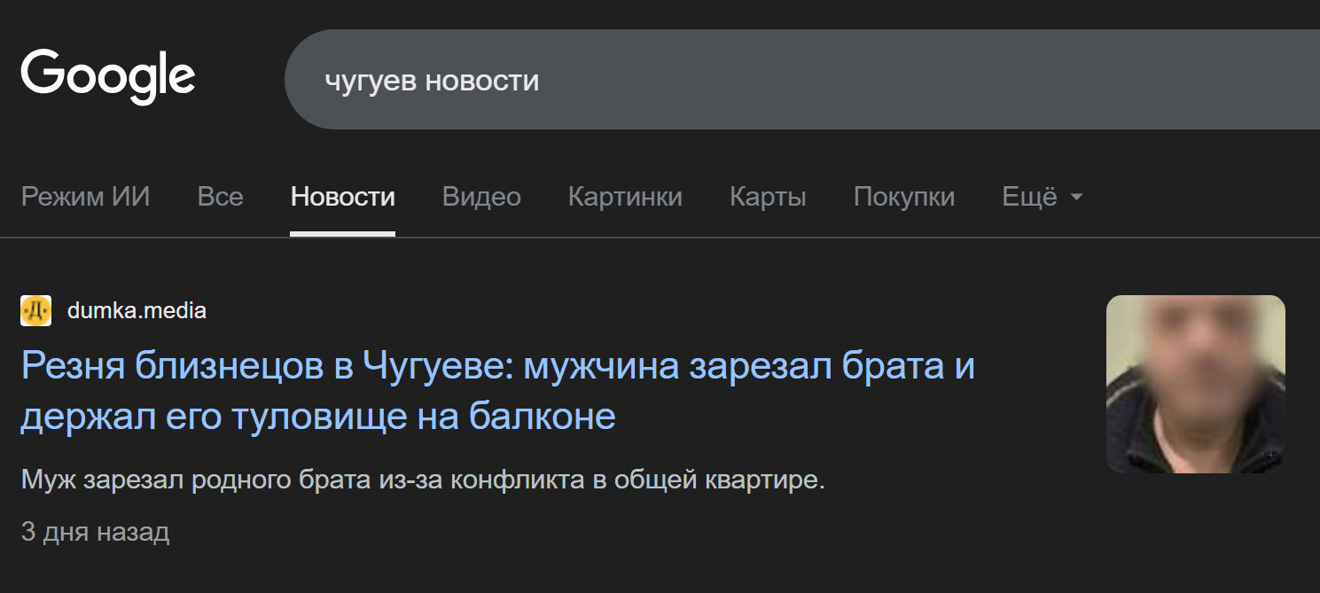 >>1115450 Странно, Чугуево не бомбят. Но вот 3 дня назад хохол зарезал своего брата. Подпедочурка вроде был в треде 3 дня назад, но может он родственник и сейчас даёт показания. Надо деанонить выблядка.
